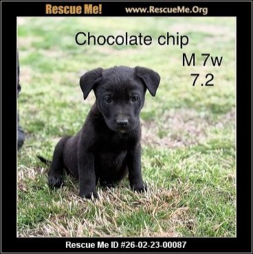 Chocolate Chip is one of 5 black lab mix pups found abandoned. We don't know mom or dad. They are so cute and sweet