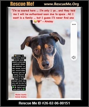 Read more »26-02-06-00151D028Ainsley (f)(female)Black and Tan Coonhound mixBladen County, Elizabethtown, NCID: 26-02-06-00151
