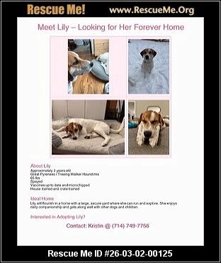 Lily is looking for her forever home. Due to unforeseen circumstances, I am no longer able to care for her. She is
