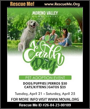 The shelter's Earth Day Adoption Event ends Saturday April 25th at 3 pm. $50 dog adoptions include 1st vaccines,